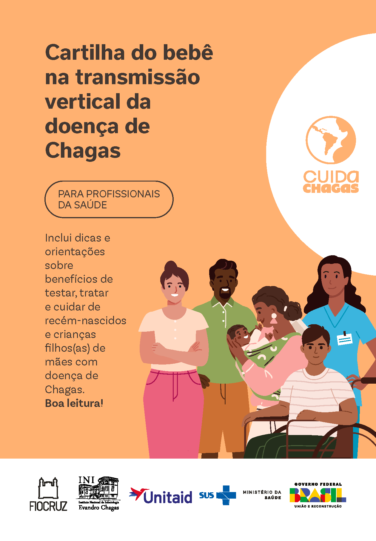 Cartilha técnica dirigida a profissionais de saúde com orientações práticas sobre diagnóstico, tratamento e acompanhamento de bebês e crianças expostas à transmissão vertical da doença de Chagas. Traz informações atualizadas sobre exames (PCR, parasitológico e sorologia), uso do benznidazol, manejo de eventos adversos e cuidados para responsáveis. Recurso essencial para qualificar o cuidado precoce e garantir altas taxas de cura.